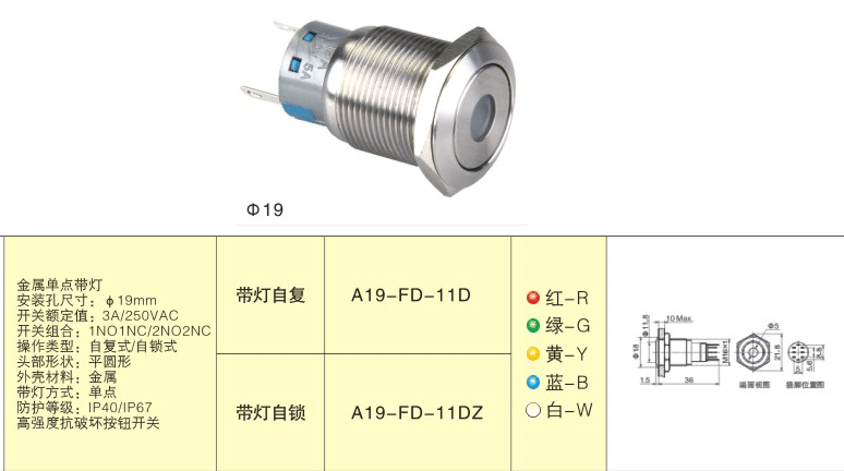 Metal push button switch -