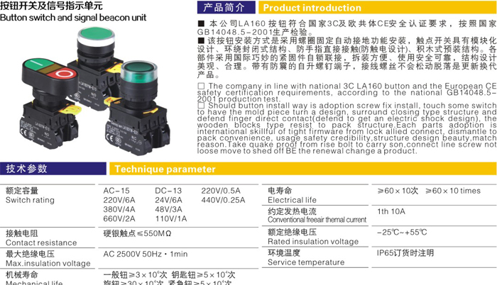 LA160(YW)series of button switch